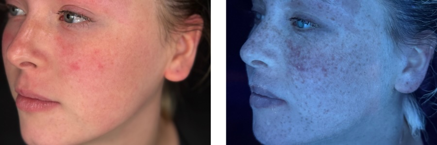 Using two light modes, simulated daylight and LED-UV, the SkinScope helps reveal concerns such as dehydration, congestion, pigmentation, and early sun damage that may not be obvious in regular lighting. This deeper insight allows us to create more accurate, personalized treatment plans and recommend products that truly support your skin’s needs.